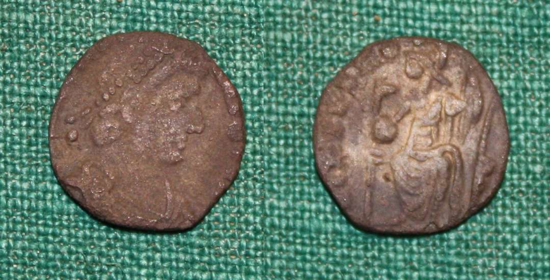 Romersk, Siliqua med kejserportræt og Urbs Roma. Maximus/Virtus Romanorum with Roma on throne facing