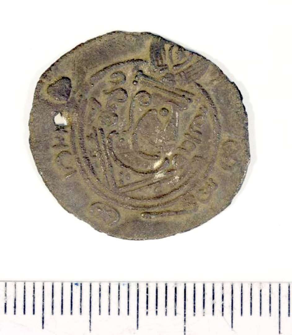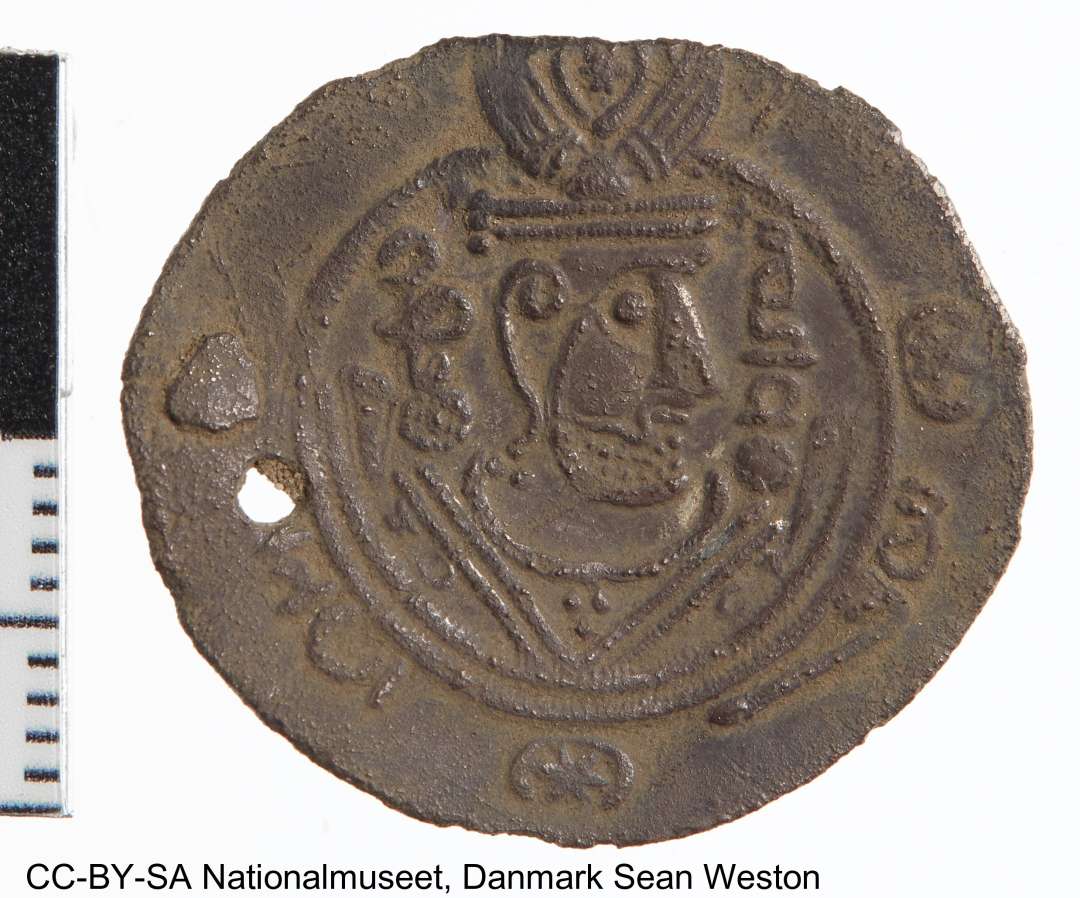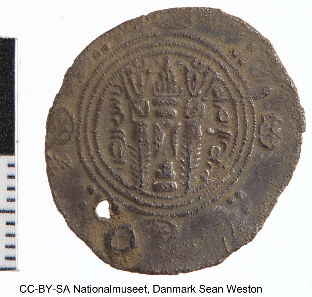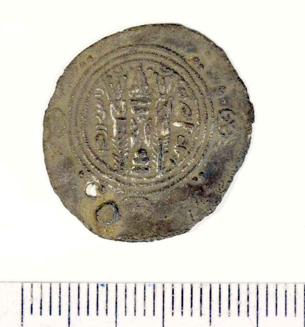 Mønten er en Tabaristan, apzút, drachma, 783? e.kr., kraftigt korroderet, 1 perforation, 1 igenfyldt perforation. Diameter: 2,3 cm.