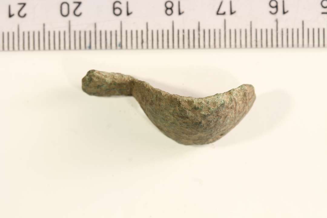 Fragment af kort ligearmet fibel. Længde: 3,3 cm.